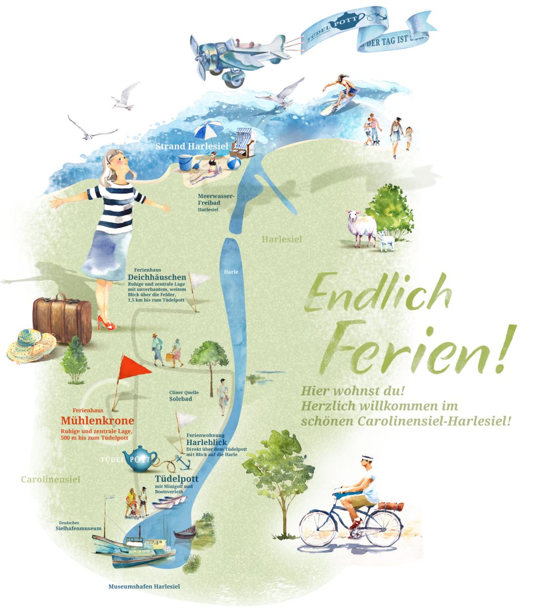 Das romantische Nordseeheilbad Carolinensiel ist nur 15 Minuten zu Fuss entfernt und verwebt eindrucksvoll und gekonnt Geschichtsträchtiges und Modernes. Mit seinen drei Häfen zählt es zu den attraktivsten Zielen an der ganzen Küste – jahrhundertealte Plattbodenschiffe, originalgetreu in liebevoller Handarbeit restauriert, liegen hier unmittelbar vor Anker und laden zum Schwärmen und Staunen ein. Ob mit unbändigem Sportsgeist oder gemütlich zur puren Entspannung, ganz gleich ob zu Wasser, zu Lande, unterwegs mit dem Boot, dem Rad oder zu bequem zu Fuß: In unmittelbarer Nähe finden Sie unzählige attraktive Fitness-, Wellness- und Freizeitmöglichkeiten für die ganze Familie, bunte Ausflugsziele und außerordentlich Genussreiches für jeden Geschmack und noch das echte Nordsee-, Strand- und Inselfeeling, dass wir alle so sehr lieben. Weiteres zu unserem schönen Nordseeheilbad Carolinensiel-Harlesiel mit aktuellem Veranstaltungskalender sowie viele spannende Ideen für Ausflüge haben wir hier für euch zusammengestellt.