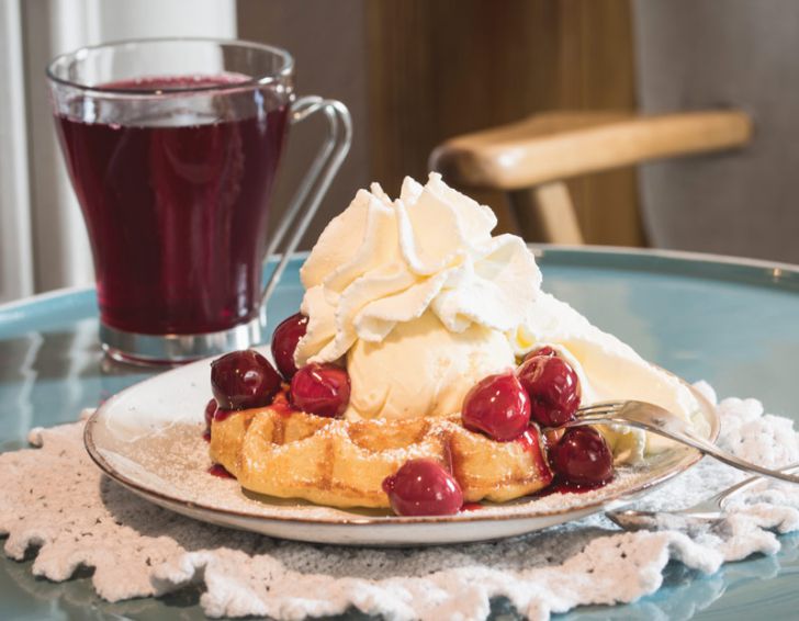 Diese Genuss-Kreation vereint gleich zwei köstliche Leckereien in einem. Die Verführung aus Eiscreme mit frisch gebackenem Waffelschiff getupft mit Sahne, überzogen mit einer köstlich Sauce sorgt zusammen mit einer fruchtigen Überraschung Obststückchen für das ultimative Genusserlebnis.